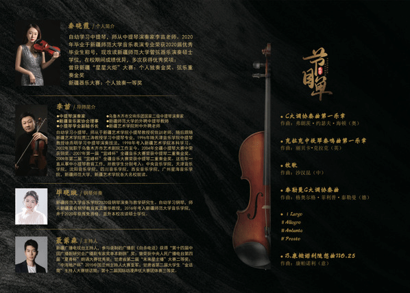 不论是维也纳古典乐派的严谨,还是近现代作品中的细腻情感,中提琴的独奏,都将展现出一个别具风采的舞台,一场扣人心弦的音乐会。