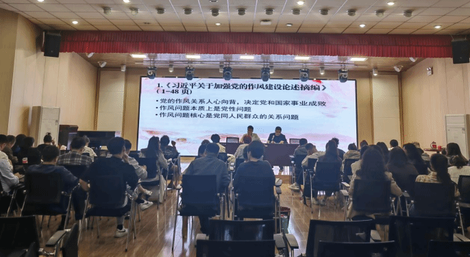 会议首先由谢万章副院长领学《习近平关于加强党的作风建设论述摘编》的1-48页内容,希望全体教职工深刻领会贯彻习近平总书记重要讲话精神,时刻铭记“党的作风就是党的形象,关系人心向背,决定党和国家事业成败”。通过学习,全体教职工深刻认识到作风建设是全面从严治党的永恒课题,必须以钉钉子精神纠治“四风”,将中央八项规定精神化为日常自觉,以优良作风凝聚师生力量,为学院事业发展提供坚强保障。