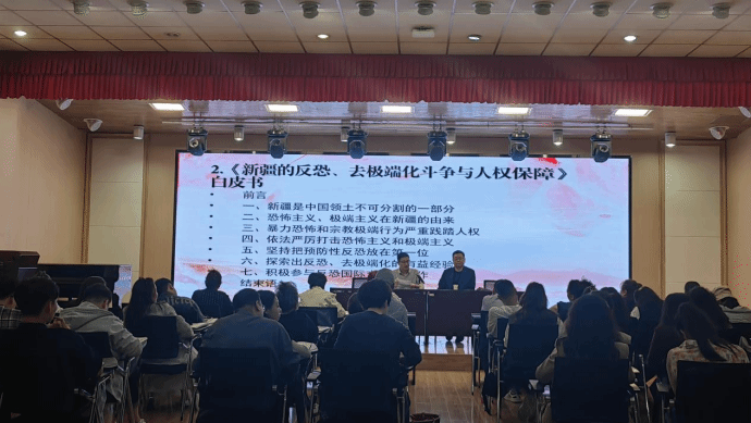党委副书记、纪委书记赵士城领学《新疆的反恐、去极端化斗争与人权保障》白皮书,带领教师们回顾新疆反恐斗争的历史背景与实践成效。白皮书指出,新疆依法开展反恐和去极端化斗争,有效遏制了恐怖活动多发势头,最大限度保障了各族人民的生存权与发展权。通过案例分析与数据解读,大家深刻认识到反恐斗争是维护国家安全、人民幸福的必然选择,必须坚决反对任何形式的恐怖主义,筑牢意识形态安全防线。