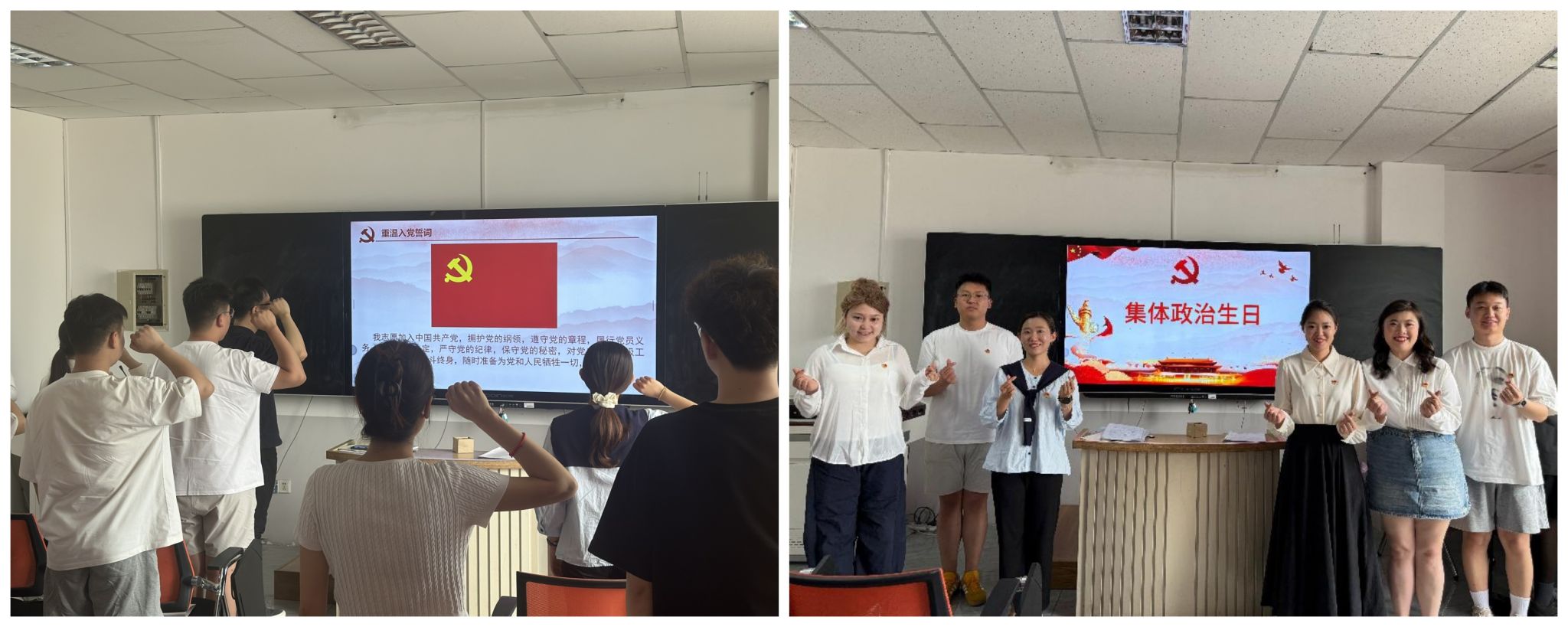 参观结束后,教师党支部全体党员在一楼大厅庄严列队,重温入党誓词,铿锵有力的誓言表达了对党的忠诚与为共产主义事业奋斗终身的决心。随后,William希尔党委书记杨志刚为7月入党的郑虎、万莹、王倩三位党员教师送上政治生日贺卡,激励大家时刻牢记党员身份,践行初心使命。三位老师也分享了自己的“党员心声”,并表示政治生日卡是党支部不断教育和引导自己强化党的意识、党员意识的重要见证。