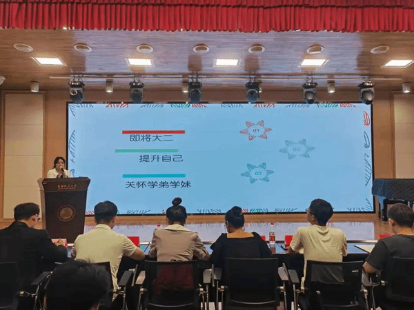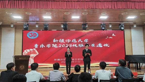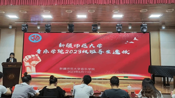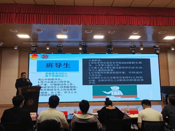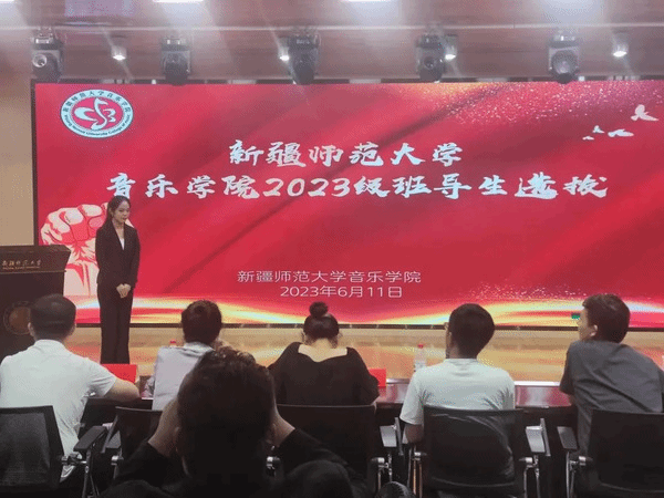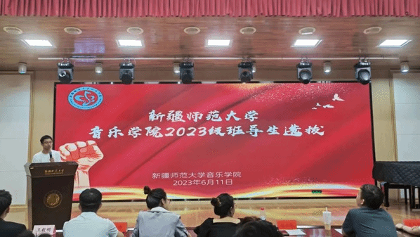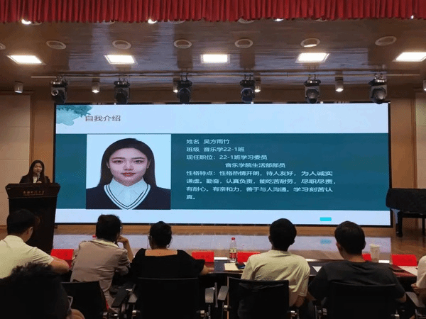 首先,由2022级“优秀班导生”代表音乐学21-5班同学麦尔旦·图尔迪和音乐表演21-6班贾涵淇同学进行经验分享。