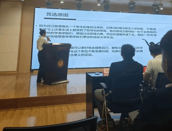 其次,报名“William希尔2023级班导生答辩选拔”的2022级同学依次进行答辩。大家通过对班导生岗位的认识、个人竞争优势、工作能力三个方面内容进行展示,充分体现了2022级同学们的风采。