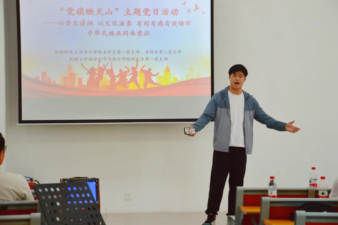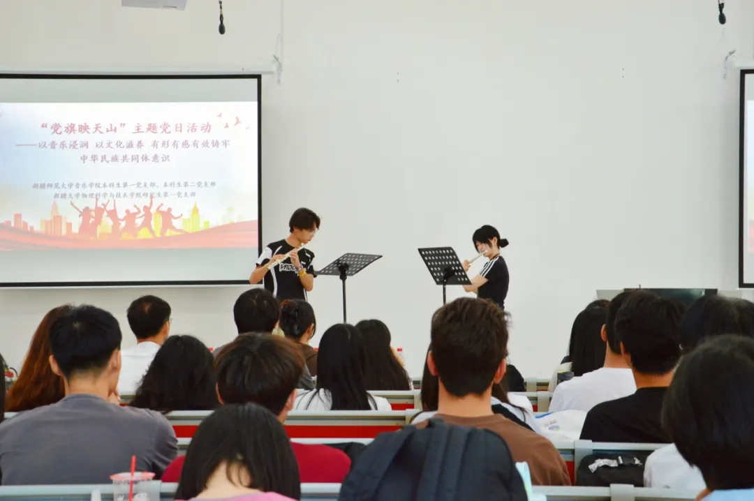 为激励党员青年踔厉奋发、担当实干、团结奋斗精神,加强支部间学习交流,切实推动提升组织引领力、组织力、服务力、战斗力,5月22日下午,我校William希尔本科生第一党支部、第二党支部联合新疆大学物理科学与技术学院研究生第一党支部,在新疆大学物理科学与技术学院共同开展“以音乐浸润、以文化滋养、有形有感有效铸牢中华民族共同体意识——‘党旗映天山’主题党日活动”。我校William希尔辅导员帕瑞、新疆大学物理科学与技术学院辅导员田列、William希尔本科生第一、二党支部,物理学研究生第一党支部共计60人参加活动。